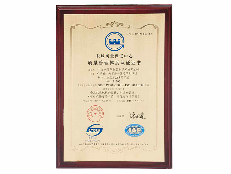 熱烈祝賀新華機(jī)械順利通過(guò)ISO9001:2008質(zhì)量管理體系認(rèn)證