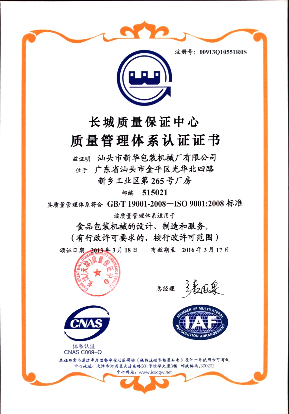 熱烈祝賀新華機(jī)械順利通過ISO9001:2008質(zhì)量管理體系認(rèn)證